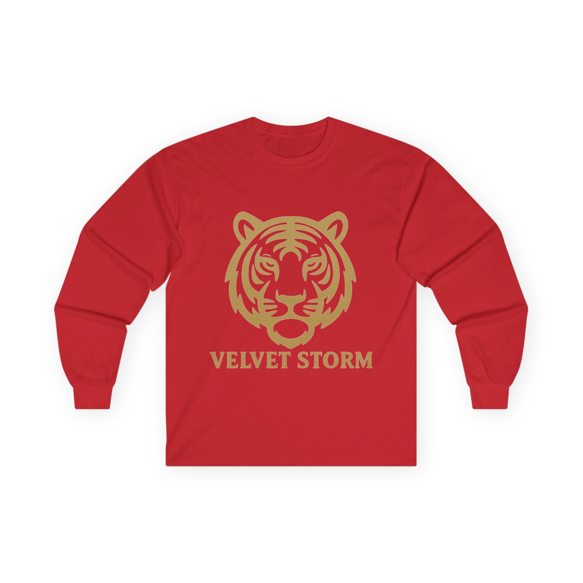Unisex Long Sleeve Tee with Velvet Storm Tiger Design, Casual Wear, Gift for Animal Lovers, Fall Fashion, Trendy Tees